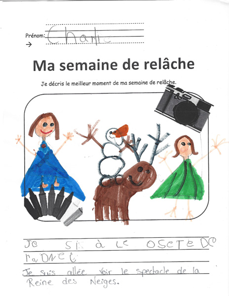 Voici le fruit du travail de vos enfants pour terminer le deuxième livre de l'Arc-en-ciel des Dauphins. En effet, chaque enfant a décrit et illustré le plus beau moment qu'il a vécu lors de la semaine de relâche.